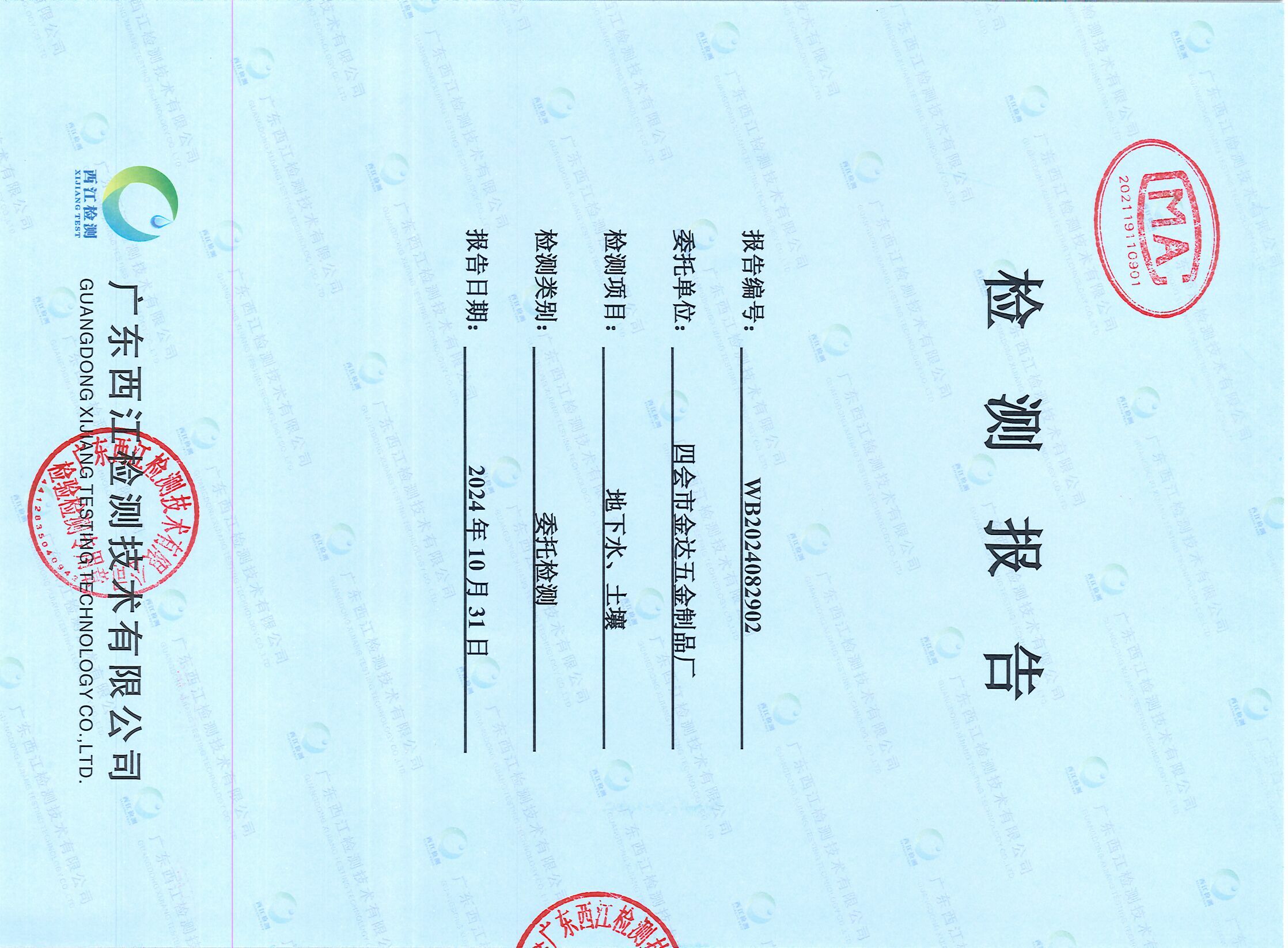 四會市金達(dá)五金制品廠地下水、土壤檢測報告